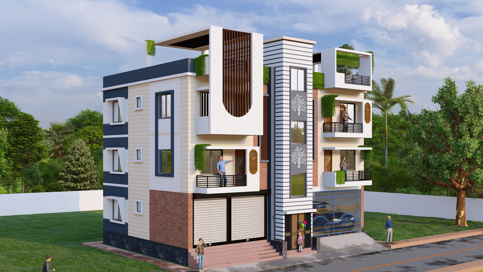 এই তিনতলা বাড়িটি আধুনিক স্থাপত্যশৈলীর এক অনন্য নিদর্শন। বাহ্যিক ডিজাইনে ব্যবহৃত হয়েছে ইট, কাঠের প্যানেলিং, এবং পেইন্টেড কংক্রিটের নিখুঁত সংমিশ্রণ, যা বাড়িটিকে দিয়েছে একটি স্টাইলিশ ও সমসাময়িক লুক।